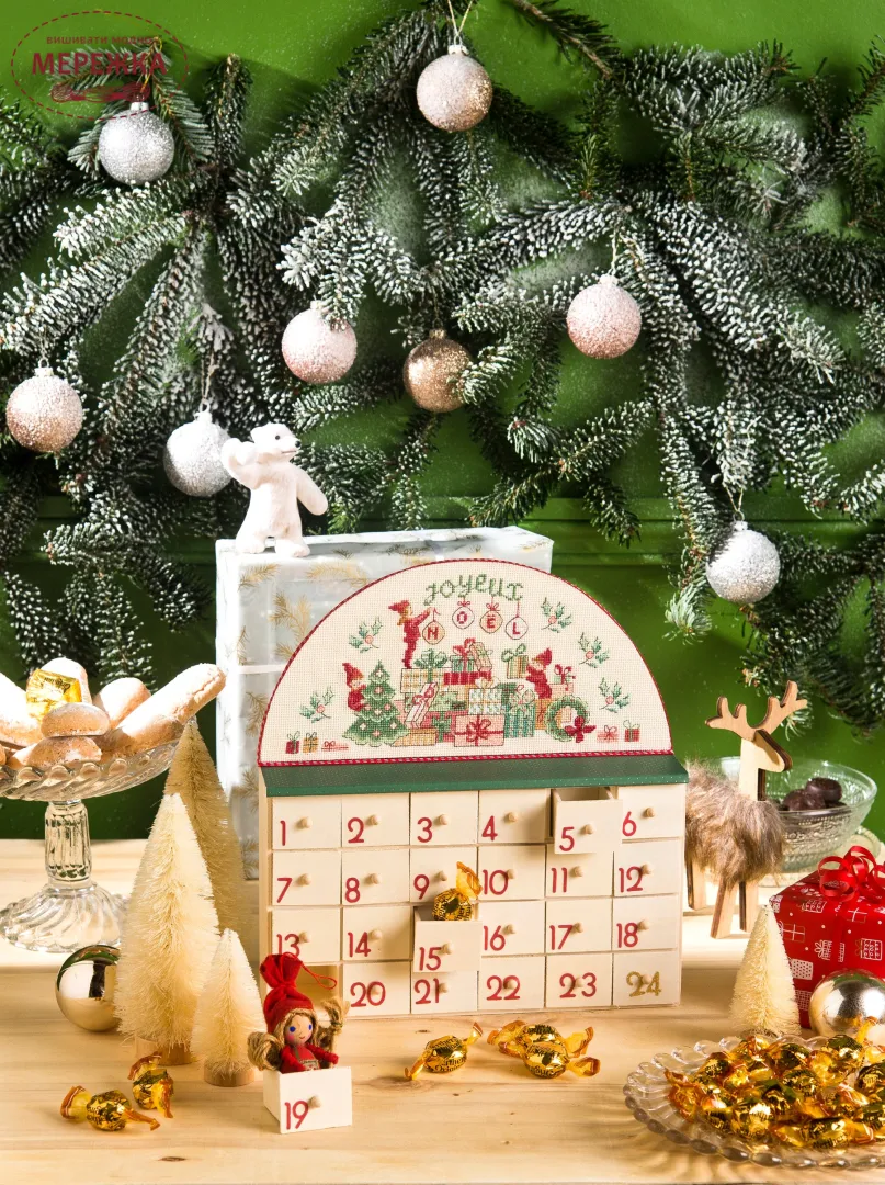 Принесіть магію різдвяного сезону у свій дім за допомогою цього шухлядного календаря, прикрашеного святковою вишивкою хрестиком. Пустотливі ельфи, складені подарунки, різдвяна ялинка та вінок підсвічуються традиційними кольорами, створюючи унікальну та радісну композицію. Кожна шухляда може містити сюрприз, перетворюючи зворотний відлік Адвенту на теплий та персоналізований ритуал.