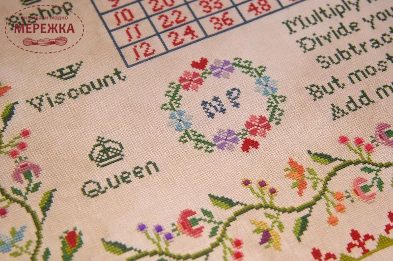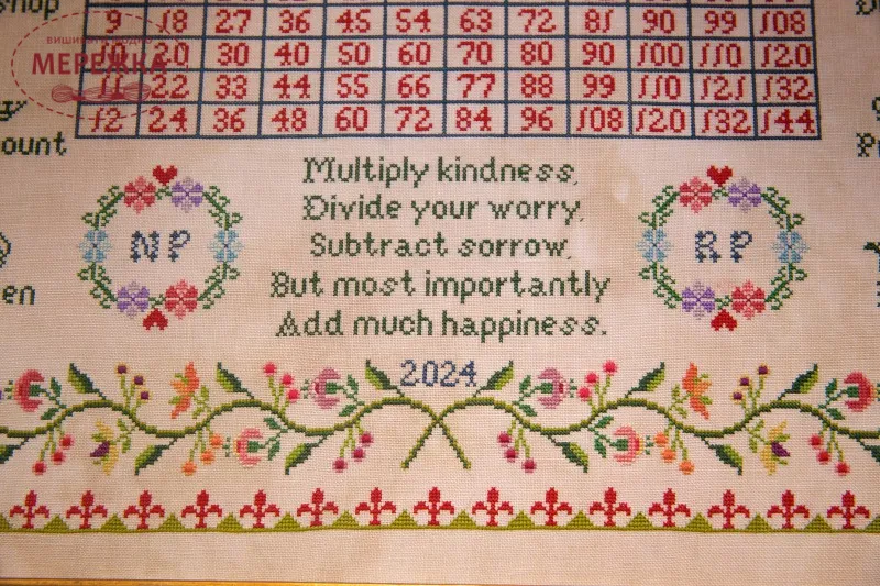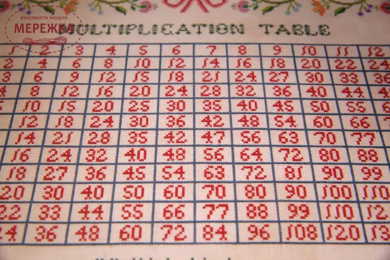 Схема для вишивання хрестиком "Multiply Kindness - A Multiplication Table Sampler" від Hands Across the Sea Samplers.