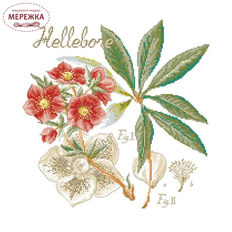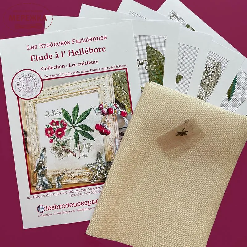 Les Brodeuses Parisiennes Схема Etude a l'Hellebore+тканина, пришивний шарм EHEL/CRE