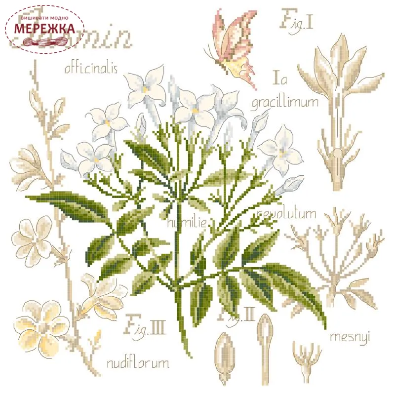 Схема "Etude au Jasmin" +тканина, пришивний шарм від Veronique Enginger для Les Brodeuses Parisiennes.