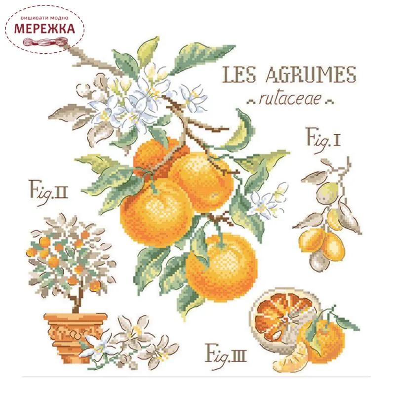 Les Brodeuses Parisiennes Схема Etude aux Agrumes+тканина, пришивний шарм EAGL/CRE