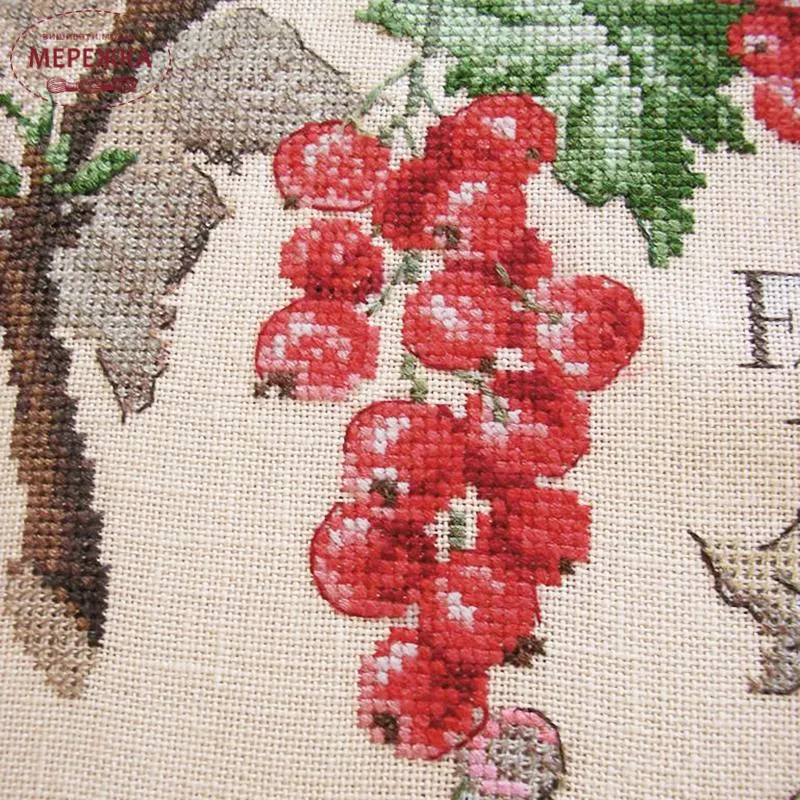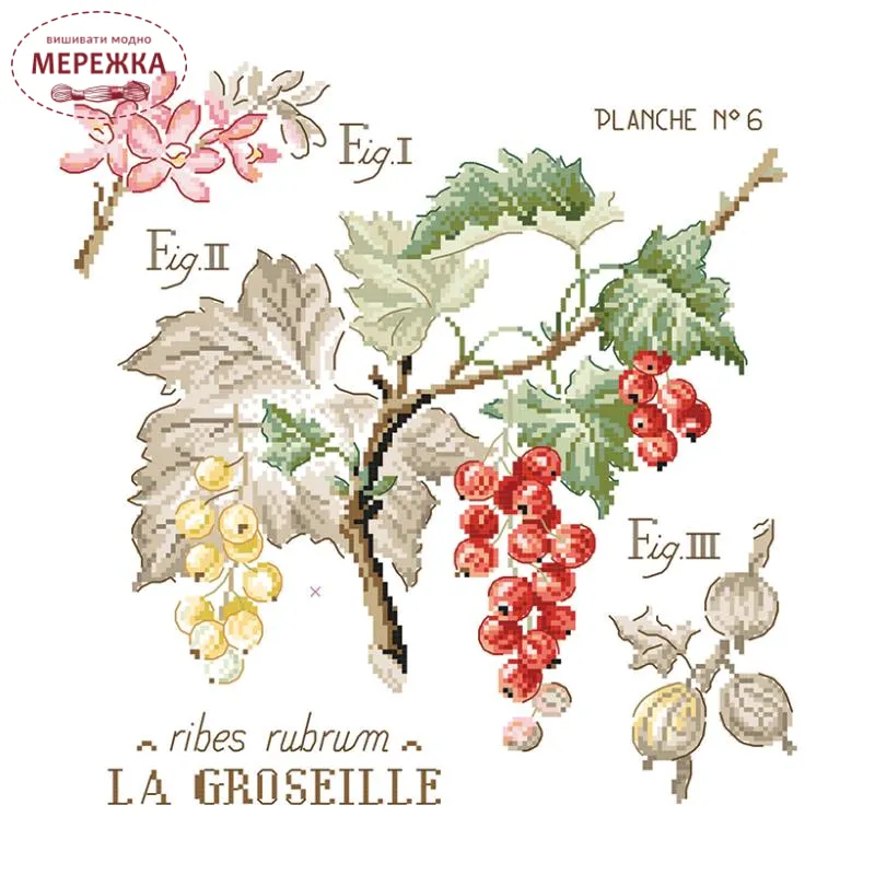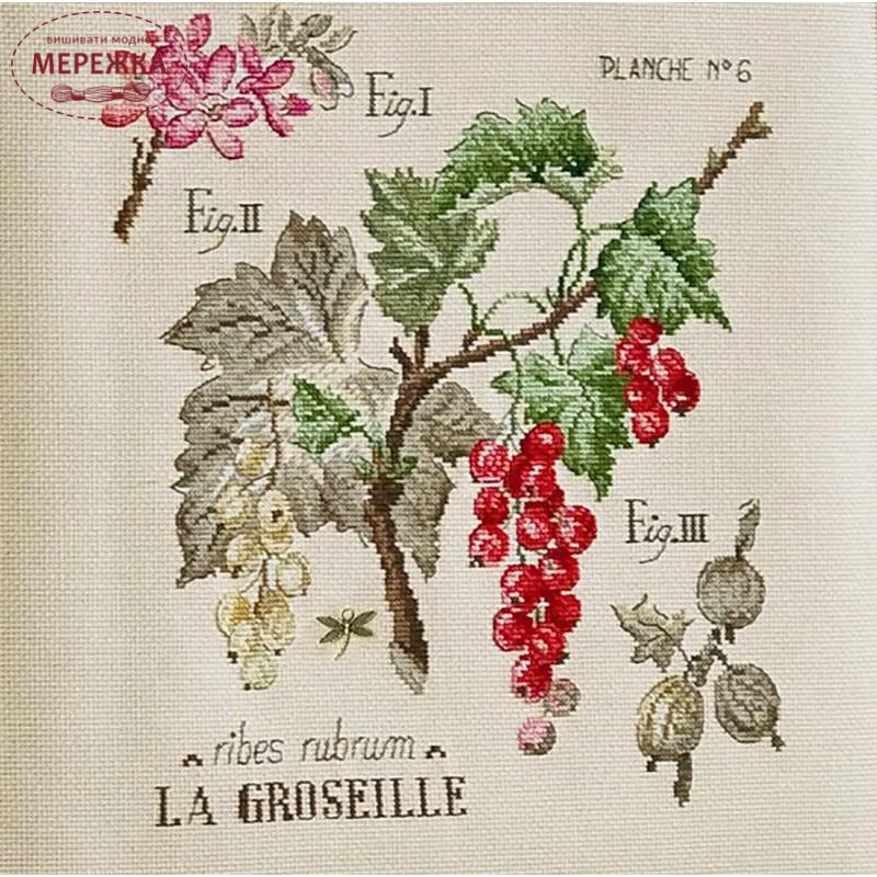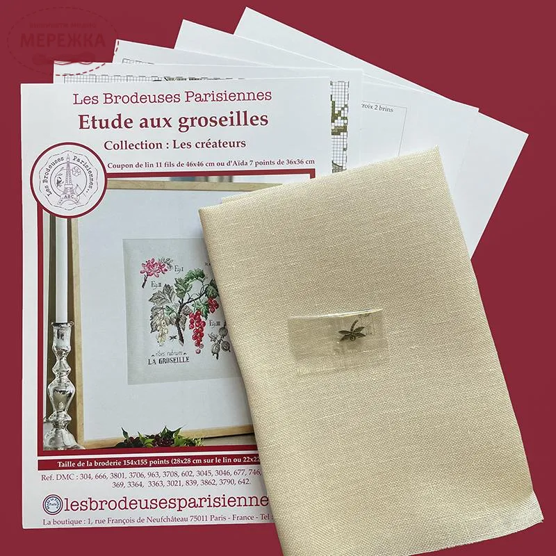 Les Brodeuses Parisiennes Схема Etude aux Groseilles+тканина, пришивний шарм EGL/CRE