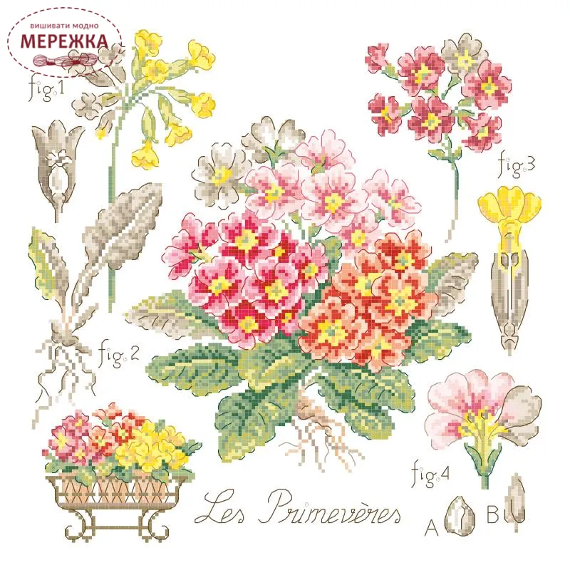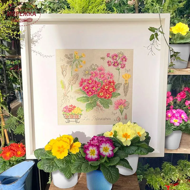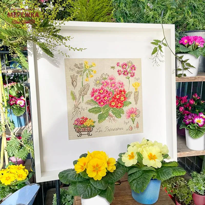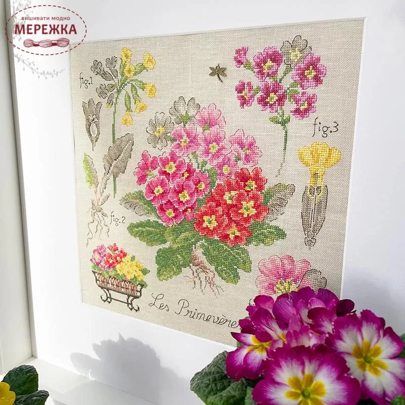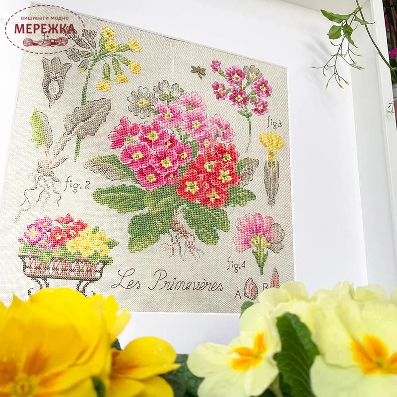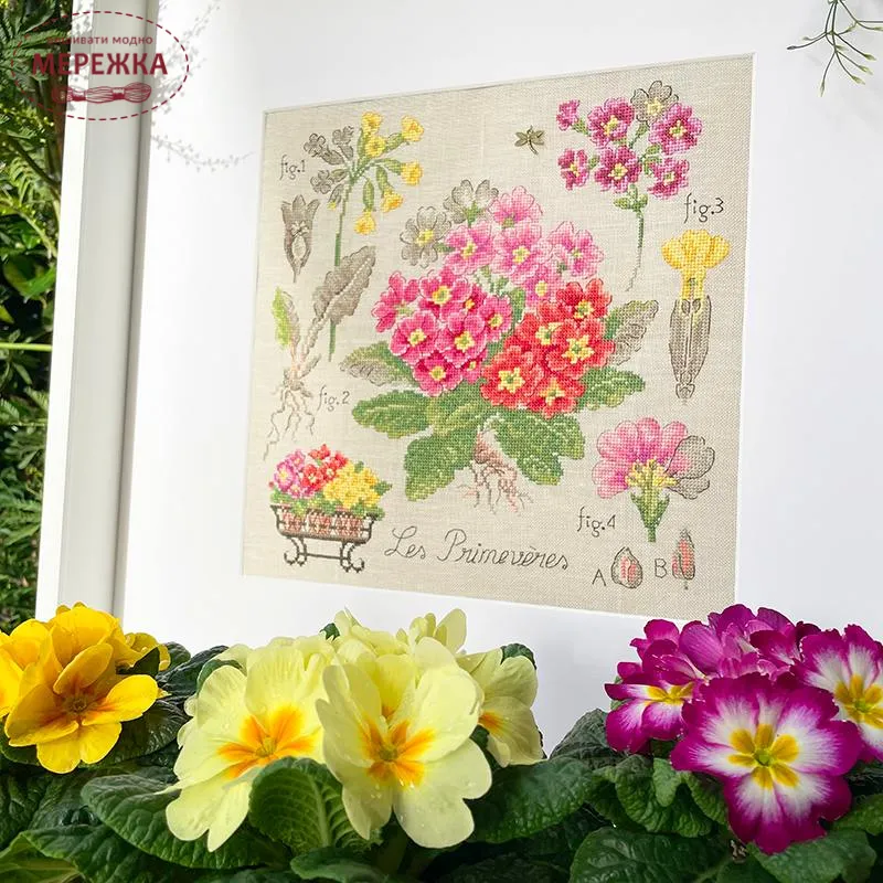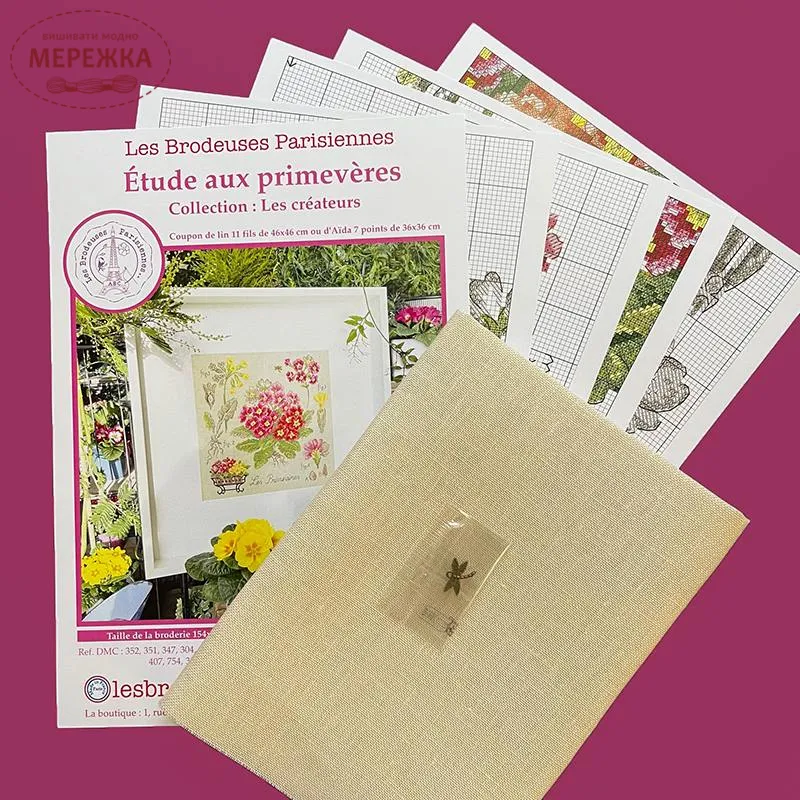 Les Brodeuses Parisiennes Схема Etude aux Primeveres+тканина, пришивний шарм ETPRIL/CRE