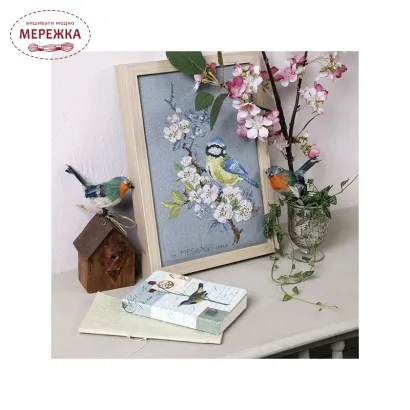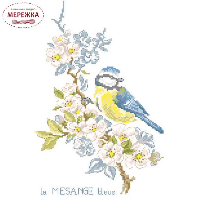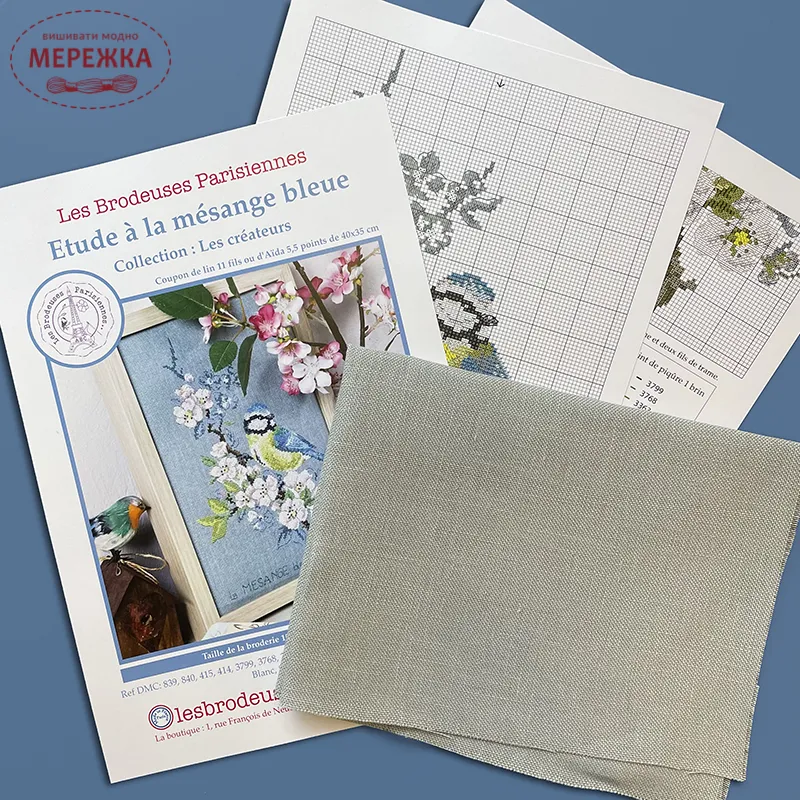 Les Brodeuses Parisiennes Схема Etude a la Mesange bleue+тканина EMLL/CRE