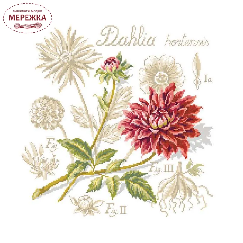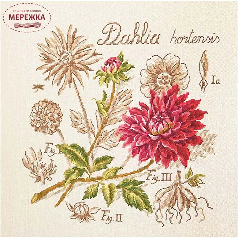 Les Brodeuses Parisiennes Схема Etude au Dahlia+тканина, пришивний шарм