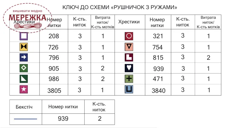 Для вишивання даного рушника рекомендуємо наступні матеріали: