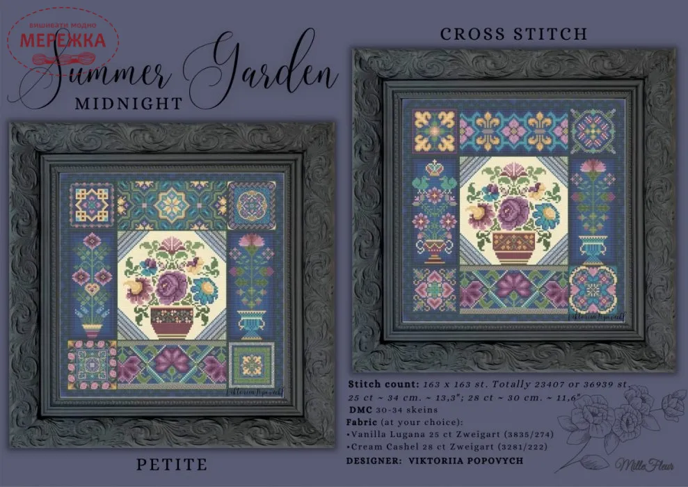 Схема для вишивання "Aurora Summer Garden Sampler (Світанковий Літній садочок Аврори)" від українського дизайнера Вікторія Попович.