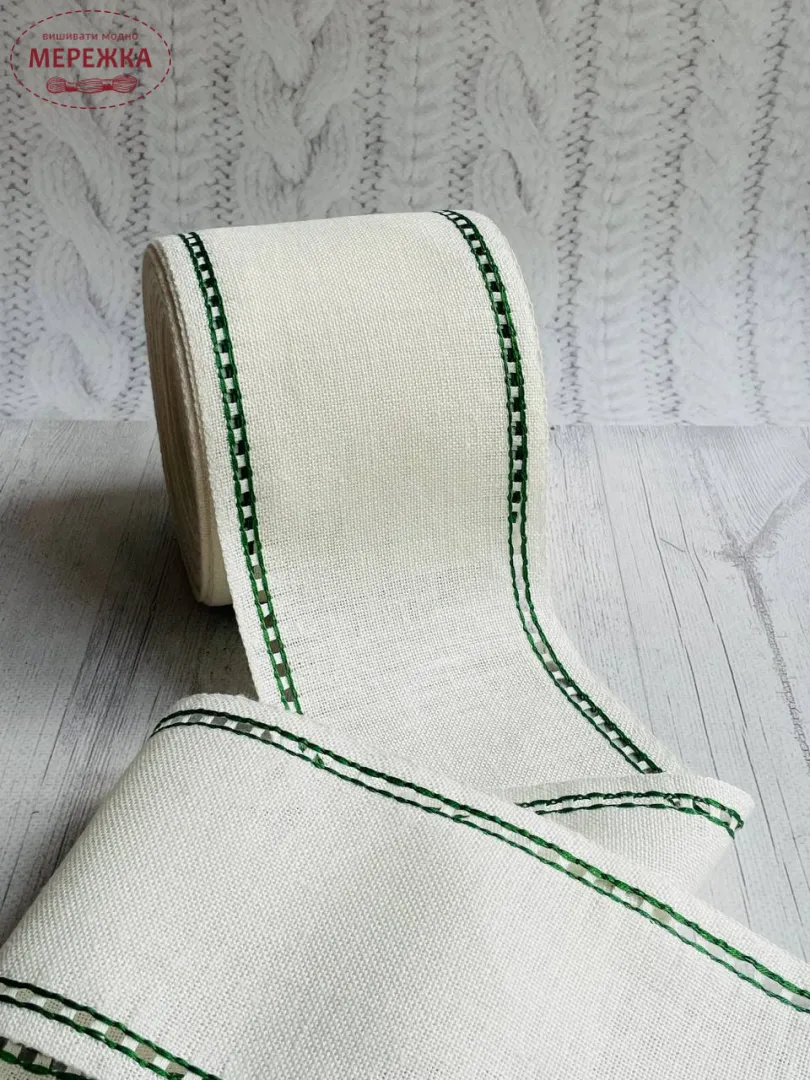 Стрічка виготовлена з рівномірного лляного полотна по якій можна вишивати будь-які дизайни.