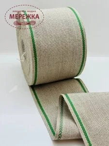 Стрічка для вишивання 10 см., біла, кант зелений 987301