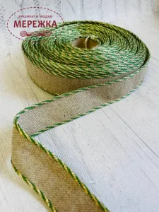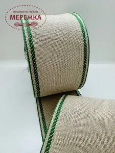Стрічка Vaupel and Heilenbeck сирий льон, кант зелений, 9 см. 987807