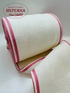 Стрічка для вишивання 12 см., біла, кант персиковий 180305
