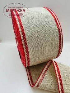 Стрічка Vaupel and Heilenbeck сирий льон, кант червоно-зелений,7 см. 32ct