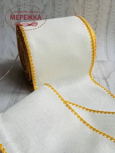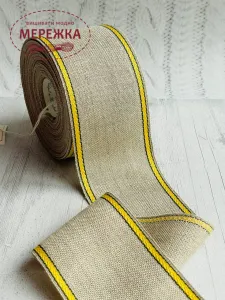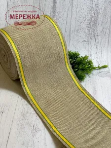 Стрічка для вишивання 10 см., сирий льон, кант жовтий 22102