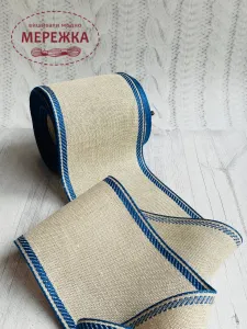 Стрічка Vaupel and Heilenbeck сирий льон, кант синій, 10 см.