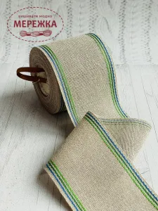 Стрічка Vaupel and Heilenbeck сирий льон, кант зелено-сині полоски,7 см.