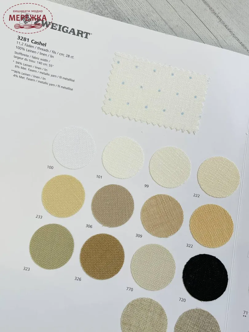 Карта кольорів рівномірного полотна Cashel 28 сt. (100% льон) від Zweigart.