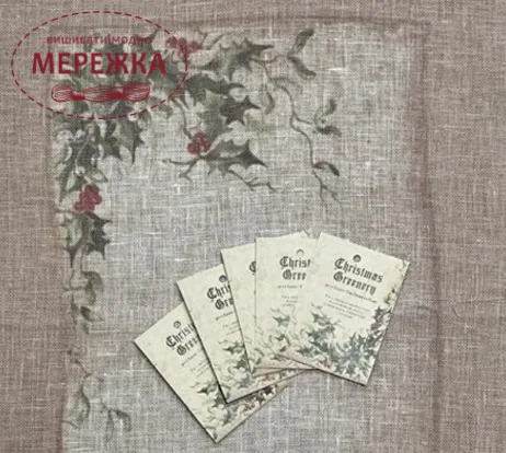 Рівномірне полотно The Primitive Hare ручного фарбування Christmas Greenery Linen 40 ct 32*40 см.