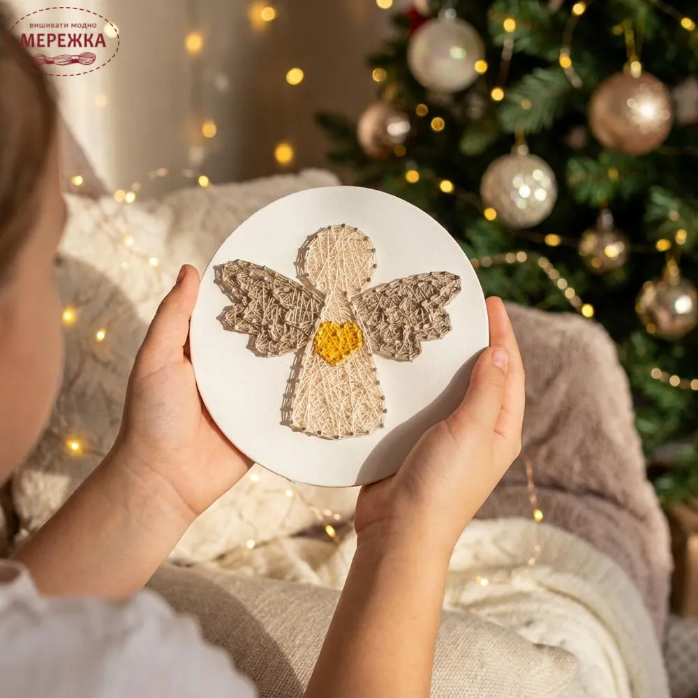 Набір String Art «Дух Різдва (Ангел)» у вигляді ангела—це творчий новорічний набір,який наповнює дім світлом,спокоєм та особливою різдвяною атмосферою.