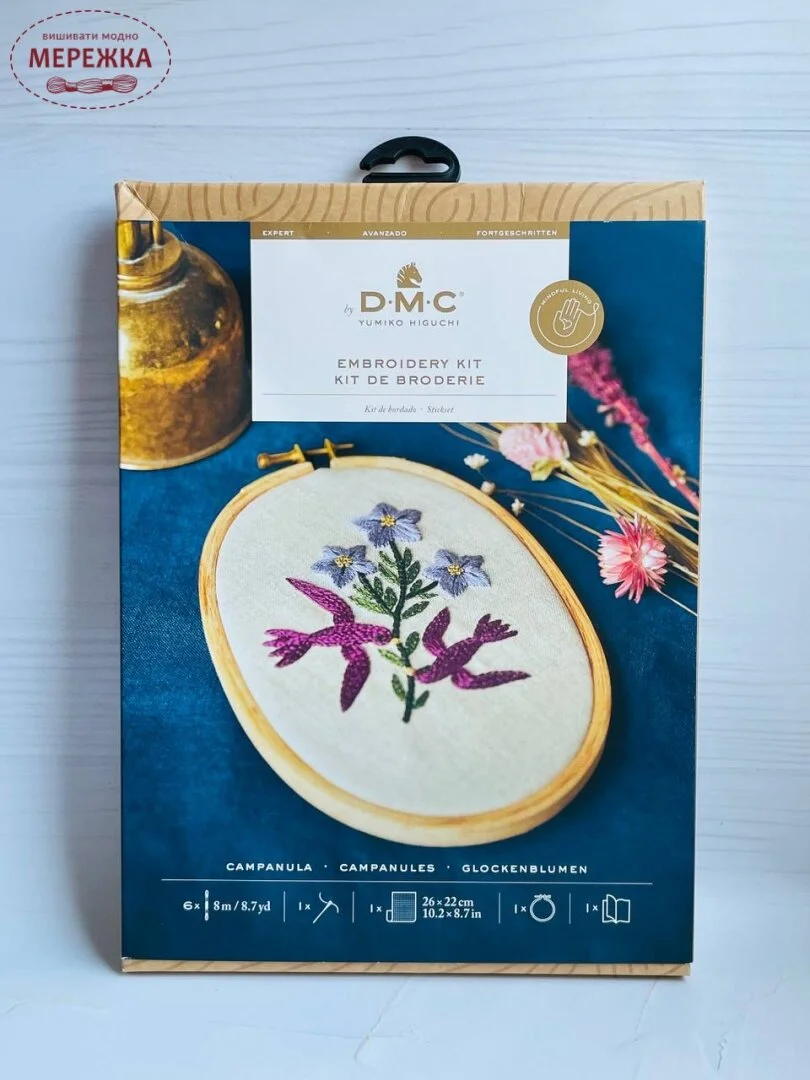 Набір для вишивання в змішаній техніці від фірми DMC укомплектований усім необхідним, до складу набору ще додатково входять п'яльця.