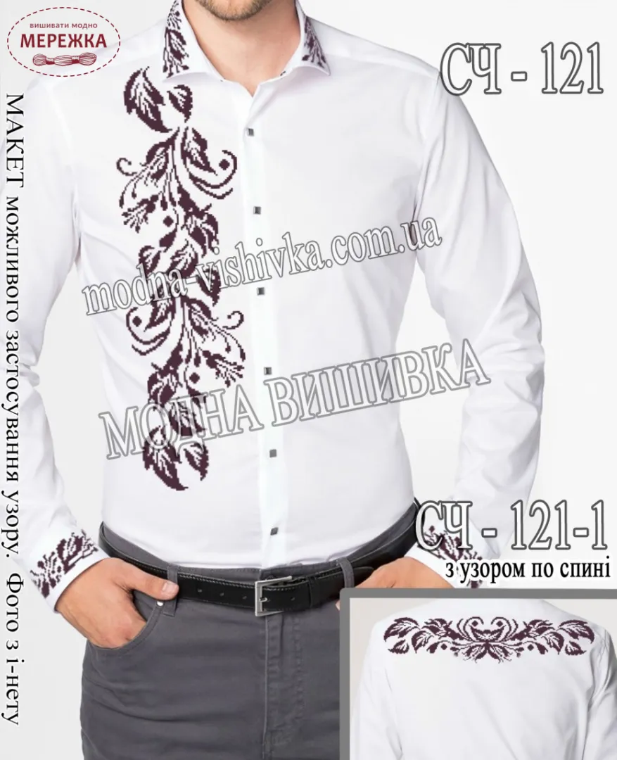 Сорочка чоловіча Модна Вишивка СЧ-121, габардин