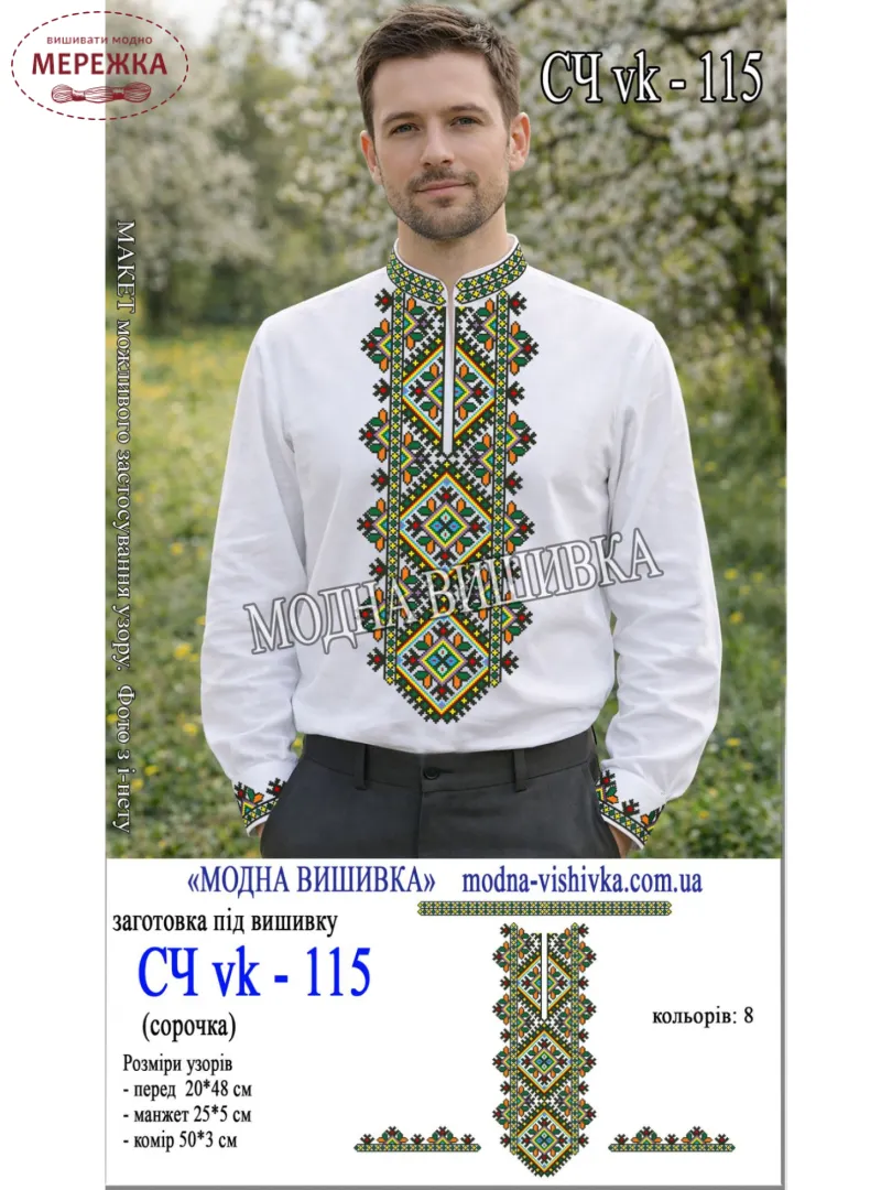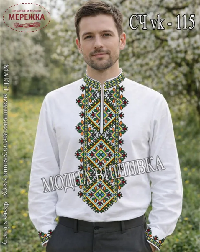 Сорочка чоловіча Модна Вишивка СЧ VK-115, білий Онікс