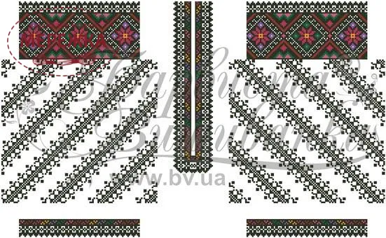 Тканина із нанесеним малюнком-схемою, на котрій дуже легко вишивати, оскільки вона має спеціальні місця для вколювання і виколювання голки, чіткий малюнок. Склад тканини: домоткане полотно (50% поліестеру, 50% котону). Тканина розкроєна на куски розмірами: 70см*150 см - 1 шт, 78см*100см - 1 шт.