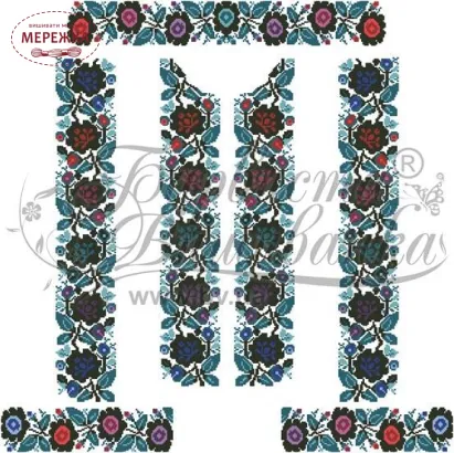 Тканина із нанесеним малюнком-схемою, на котрій дуже легко вишивати, оскільки вона має спеціальні місця для вколювання і виколювання голки, чіткий малюнок. Склад тканини: домоткане полотно (50% поліестеру, 50% котону). Тканина розкроєна на куски розмірами: 150см*75 см - 1 шт, 50см*75см - 2 шт.