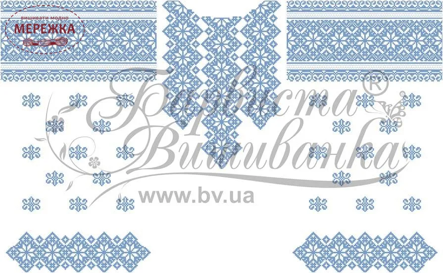 Тканина із нанесеним малюнком-схемою, на котрій дуже легко вишивати, оскільки вона має спеціальні місця для вколювання і виколювання голки, чіткий малюнок. Склад тканини: домоткане полотно (50% поліестеру, 50% котону). Тканина розкроєна на куски розмірами: 150см*75 см - 1 шт, 50см*75см - 2 шт.