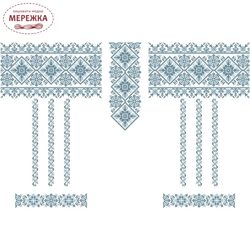 Тканина із нанесеним малюнком-схемою, на котрій дуже легко вишивати, оскільки вона має спеціальні місця для вколювання і виколювання голки, чіткий малюнок. Склад тканини: домоткане полотно (50% поліестеру, 50% котону). Тканина розкроєна на куски розмірами: 150см*75 см - 1 шт, 50см*75см - 2 шт.