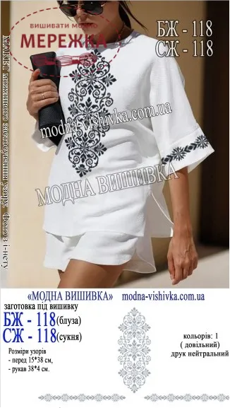 Тканина із нанесеним малюнком-схемою, на котрій дуже легко вишивати, оскільки вона має спеціальні місця для вколювання і виколювання голки, чіткий малюнок. Склад тканини: домоткане полотно (50% поліестеру, 50% котону). Тканина розкроєна на куски розмірами: