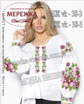 Блуза жіноча Модна Вишивка БЖ VK-38-3, біла домоткана