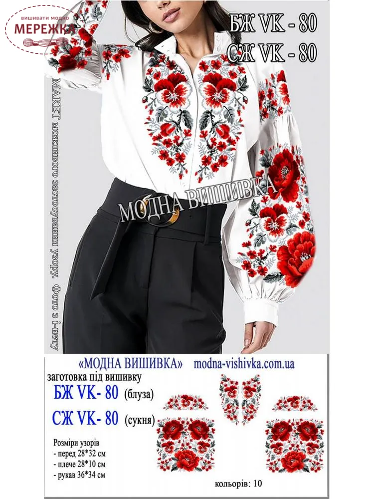 Блуза жіноча Модна Вишивка БЖ VK-80, біла домоткана