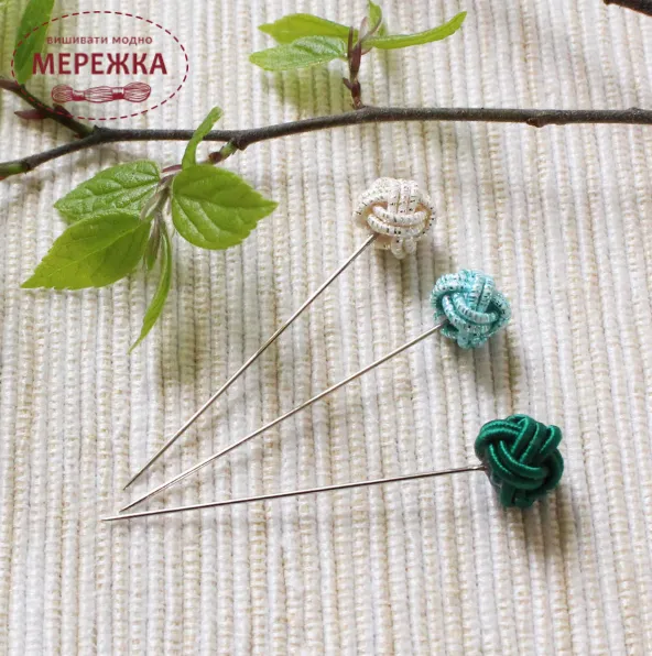 Кожен набір складається з 3 швейних шпильок: спокійного темного кольору, яскравого світлого кольору та блискучого білого кольору з блискітками.