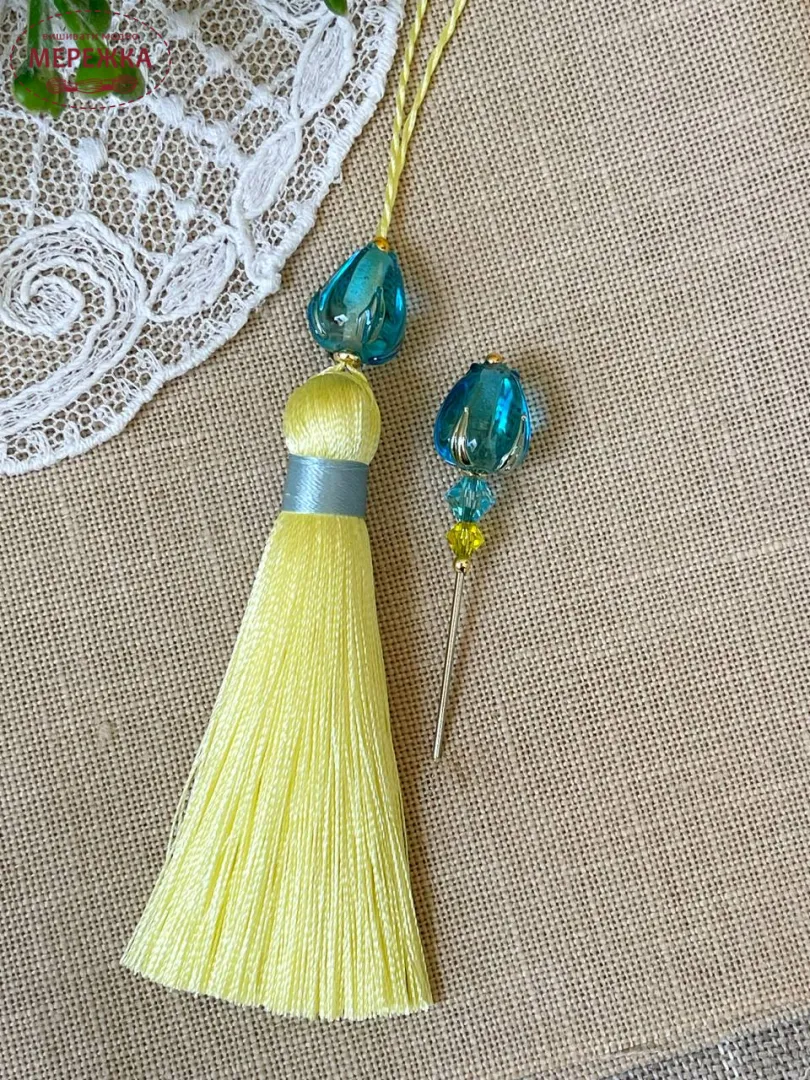 У набір входить голка-пін та китичка.