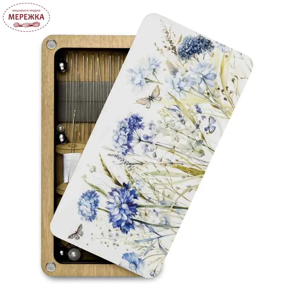 В комплекті вмонтована на дні виробу магнітна стрічка, яка надійно фіксуватиме голки, булавки, шпильки. Скринька закривається кришкою з фанери за допомогою міцних магнитів, тож надійне зберігання голок забезпечене. Чарівний дизайн скриньки теж вартий вашої уваги.