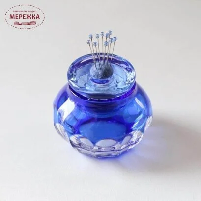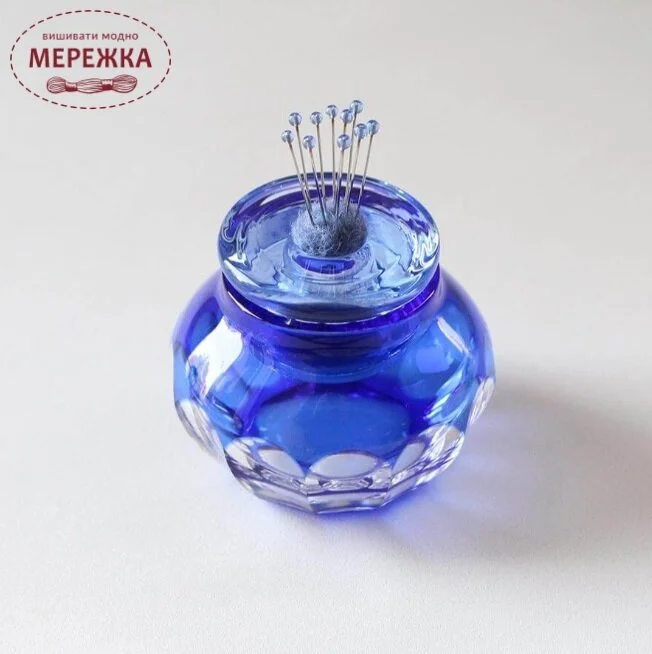 Прекрасний скляний набір Otaru Kiriko Glass Cushion із 10 скляними швейними шпильками відповідного кольору.