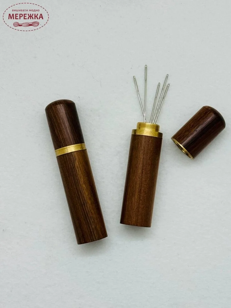 Голківниця для зберігання голок виготовлена з пластика, який імітує деревину.
