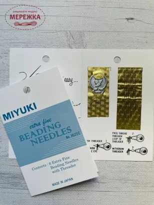 Набір бісерних голок Miyuki, виробництва Японія складається з дуже тонких голок, з вузьким довгим вушком.