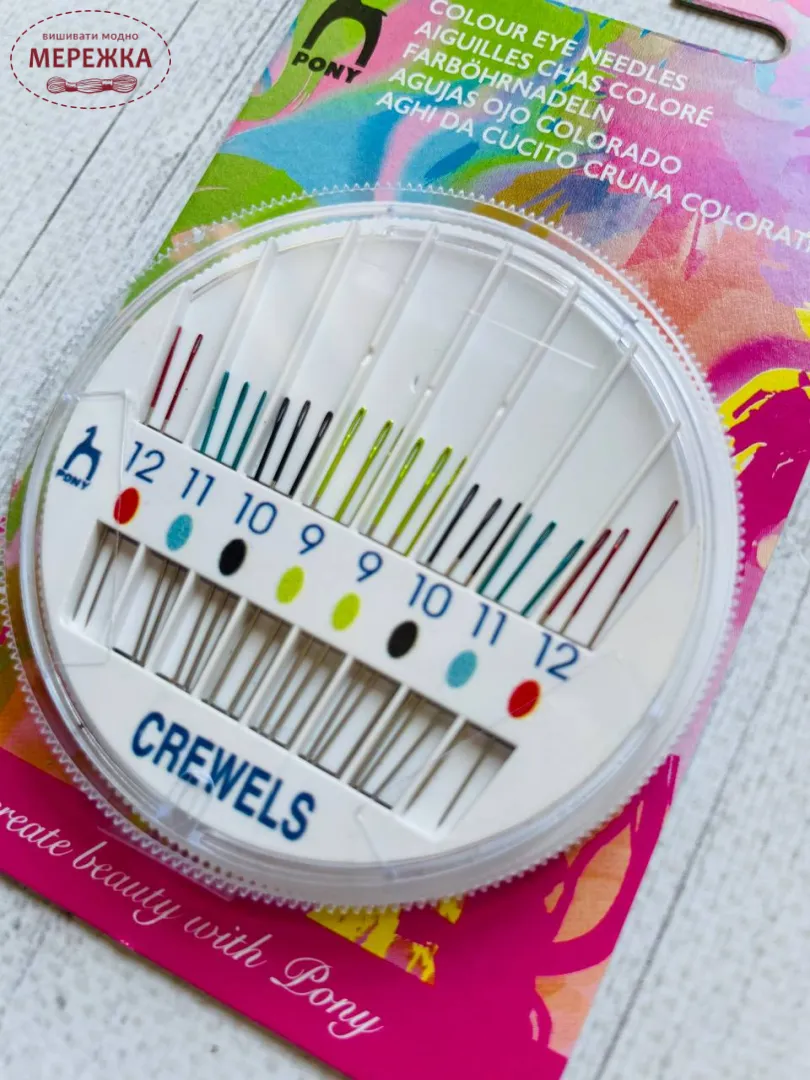 Голки бісерні з кольоровим вушком, розмір 9 - 12.
