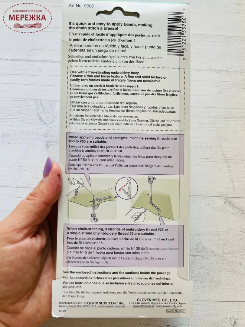 Гачок для люневільської вишивки, для пришивання бісеру Clover 9900