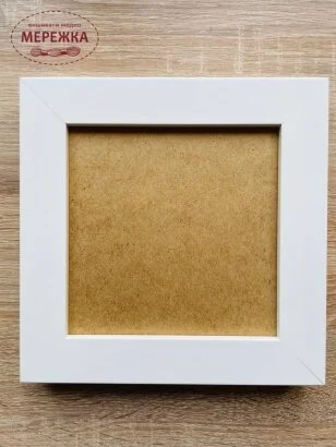 Рамка квадратної форми, виготовлена із дерев'яного багету. Має ніжку.