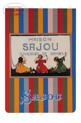 Обкладинка цього маленького блокнота містить один з наших улюблених мотивів: дівчата-вишивальниці Sajou на яскравому смугастому фоні.