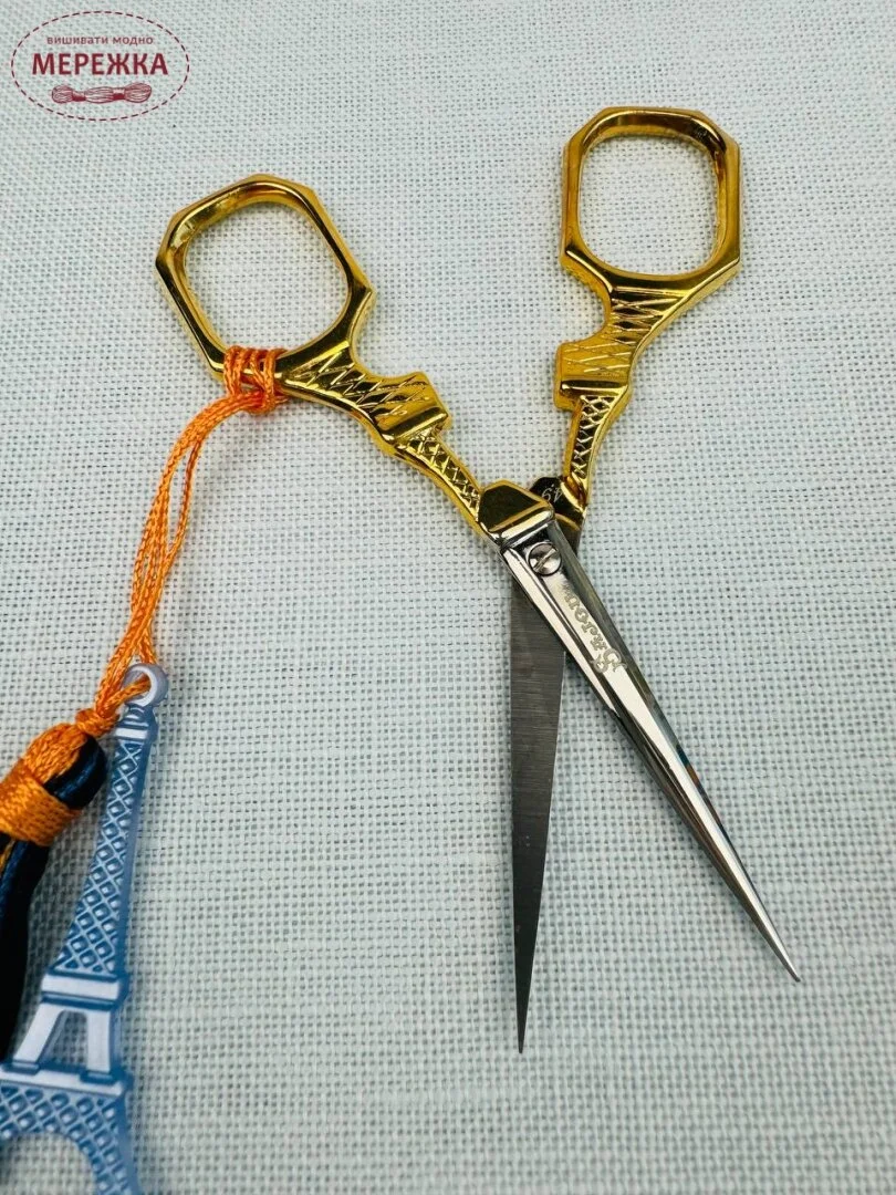 Пара хромованих ножиць для вишивання Ейфелевої вежі - блакитний шарм.