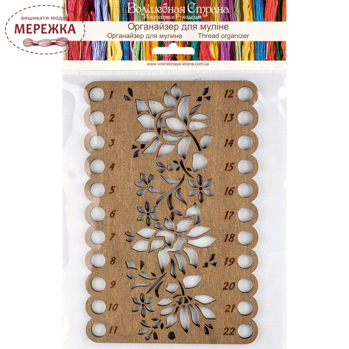 Симпатичний та практичний органайзер для муліне виготовлений з фанери, з красивим фігурним узором.