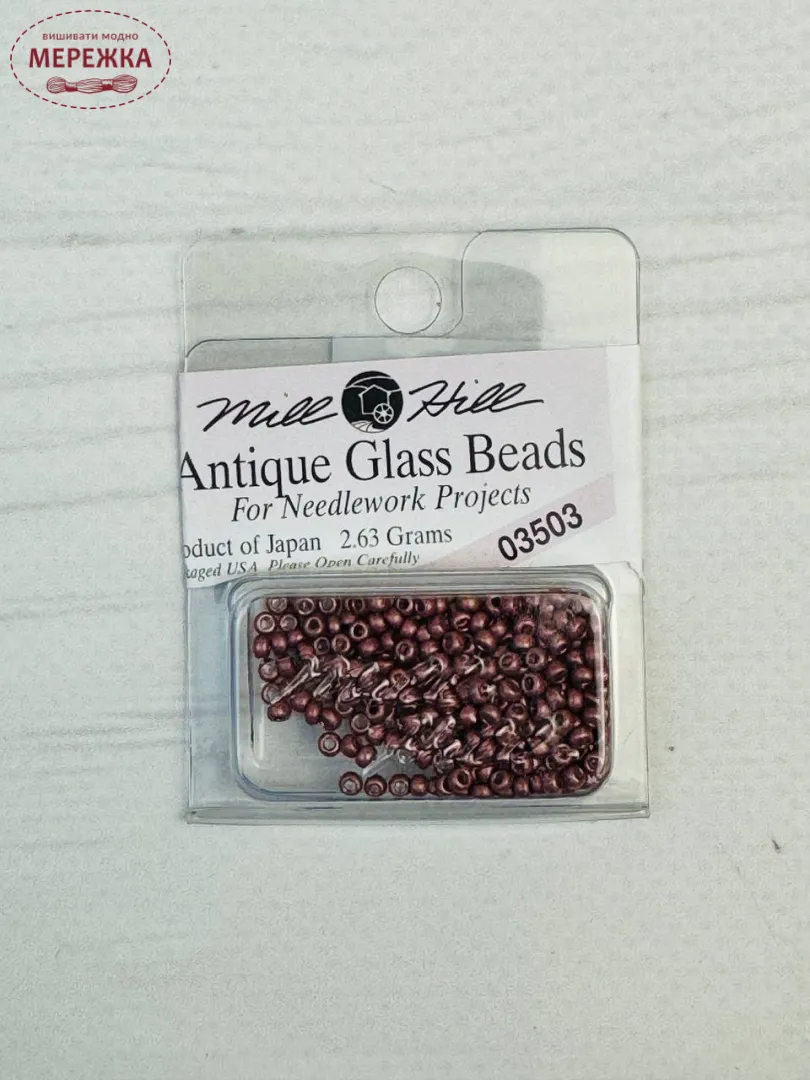 Бісер Mill Hill - японського виробництва, проте розфасований в США. Він найвищої якості, не линяє під час прання, колір та розмір відповідає номеру вказаному на упакуванню.