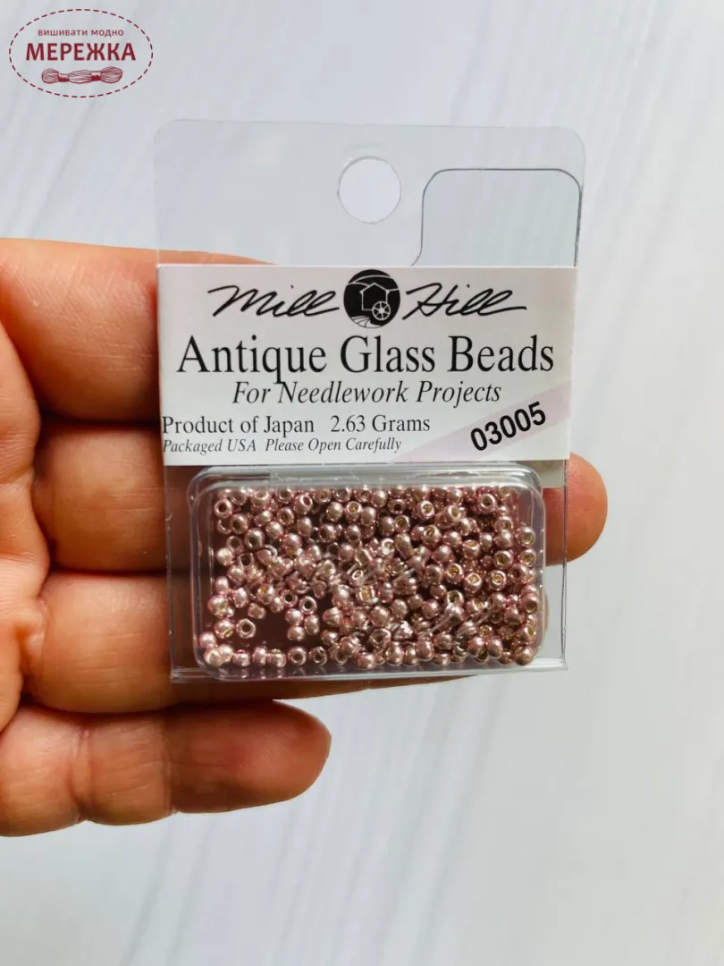 Бісер Mill Hill - ідеальний для будь-якого виду рукоділля. Це калібрований бісер, всі бісеринки однакові. Отвір в бісері точний, відповідно до розміру. Правильно підібрана голка з легкістю пройде через отвір бісеринки.