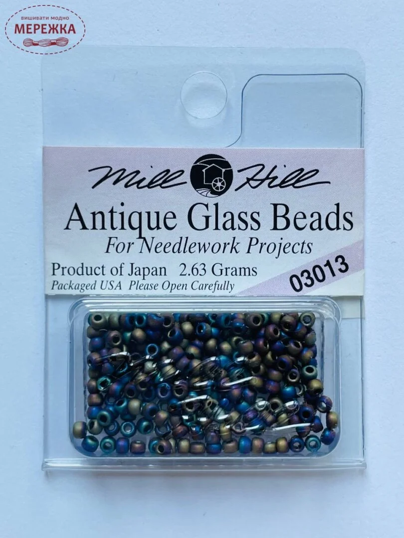Бісер Mill Hill - японського виробництва, проте розфасований в США. Він найвищої якості, не линяє під час прання, колір та розмір відповідає номеру вказаному на упакуванню.