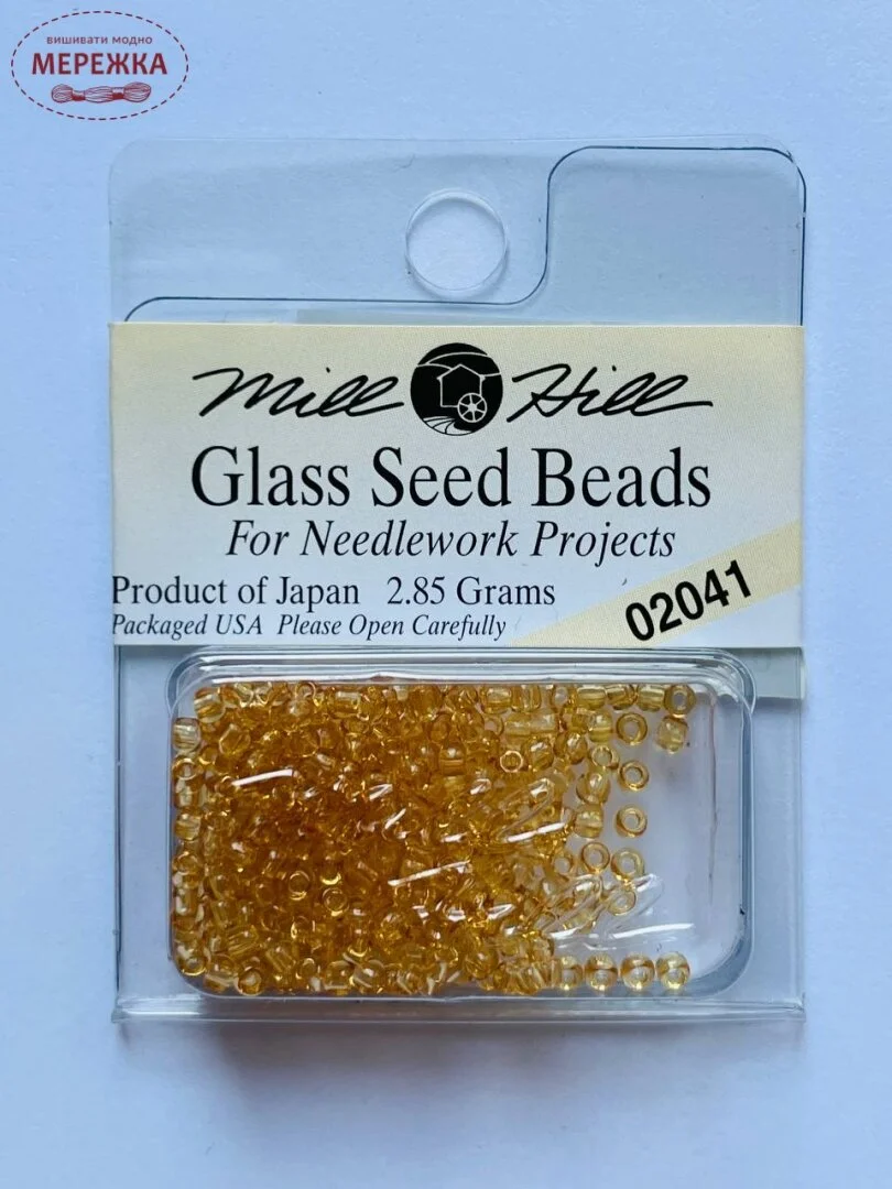 Бісер Mill Hill - японського виробництва, проте розфасований в США. Він найвищої якості, не линяє під час прання, колір та розмір відповідає номеру вказаному на упакуванню.