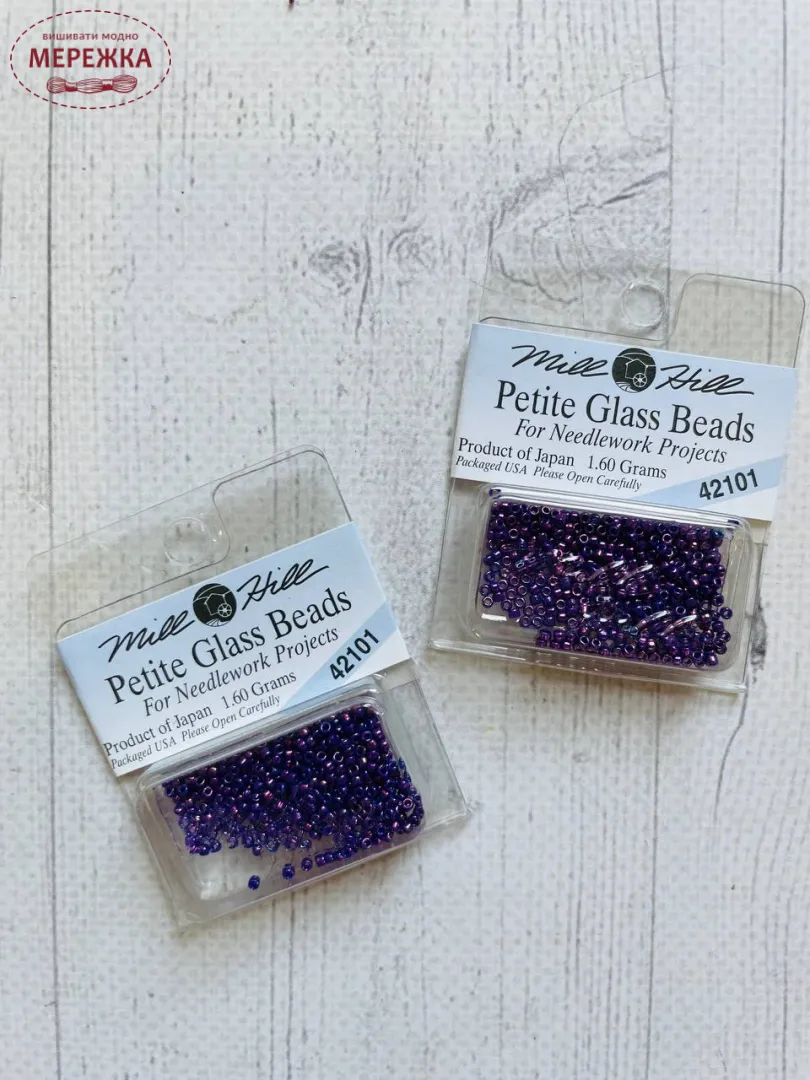 Бісер Mill Hill - японського виробництва, проте розфасований в США. Він найвищої якості, не линяє під час прання, колір та розмір відповідає номеру вказаному на упакуванню.