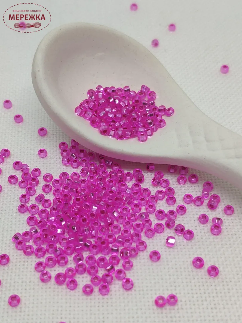 Бісер 18277 блискучий, рожевого кольору.